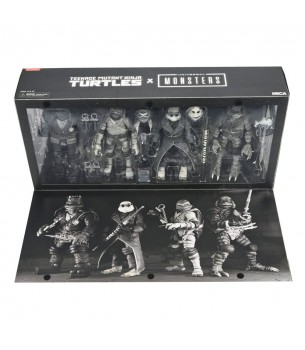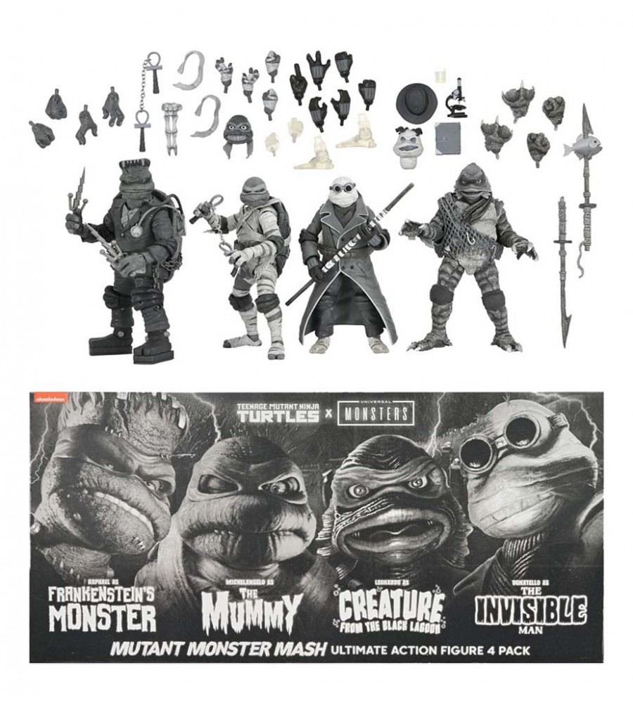 Universal Monsters X TMNT Turtles: Black & White Frankenstein, Mummy, Creature, Invisible Man Action Figure 4-pack